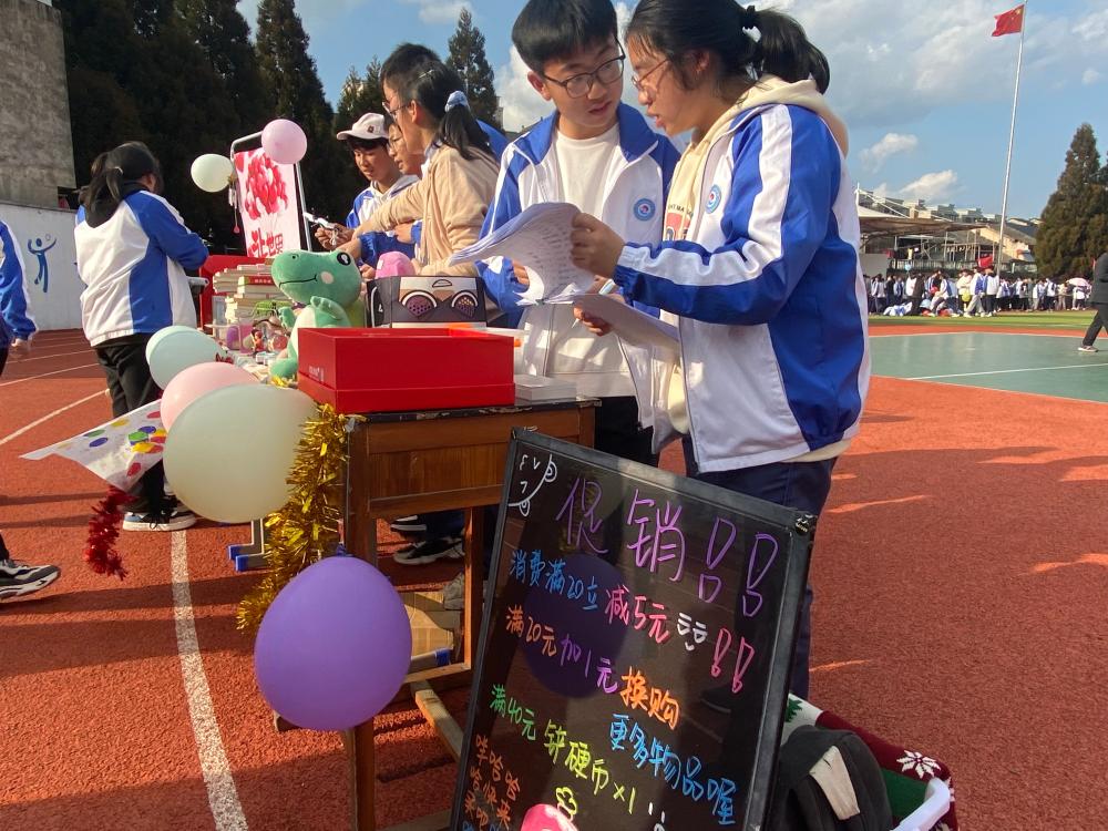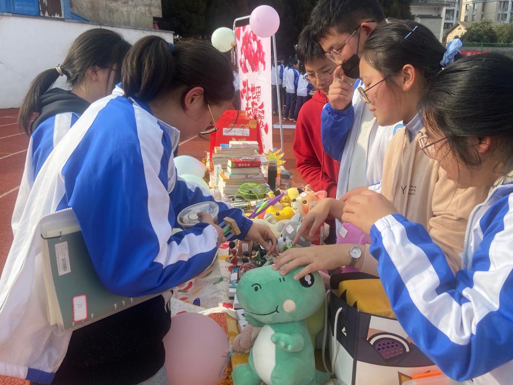 爱心义卖集市活动现场热闹非凡,在场外鸣锣开市之后,同学们在老师的带领下进入集市中开展爱心义卖活动,每个班级的小摊位上都摆满了种类繁多、琳琅满目各类物品,既有班级团员青年制作的多肉、星空瓶、卡通挂件,又有平常学生阅读的课外书籍、画册图本。同学们为了实现“班级增收”,各出奇招:有的学生拿着书本卷成大喇叭的形状,大声吆喝叫卖;有的学生化才艺为卖点,在摊位前设立起了“点歌台”“速写摊”等;还有的班级开设了系列活动项目,如“幸运套圈圈”“投壶乐”“幸运大抽奖”等。