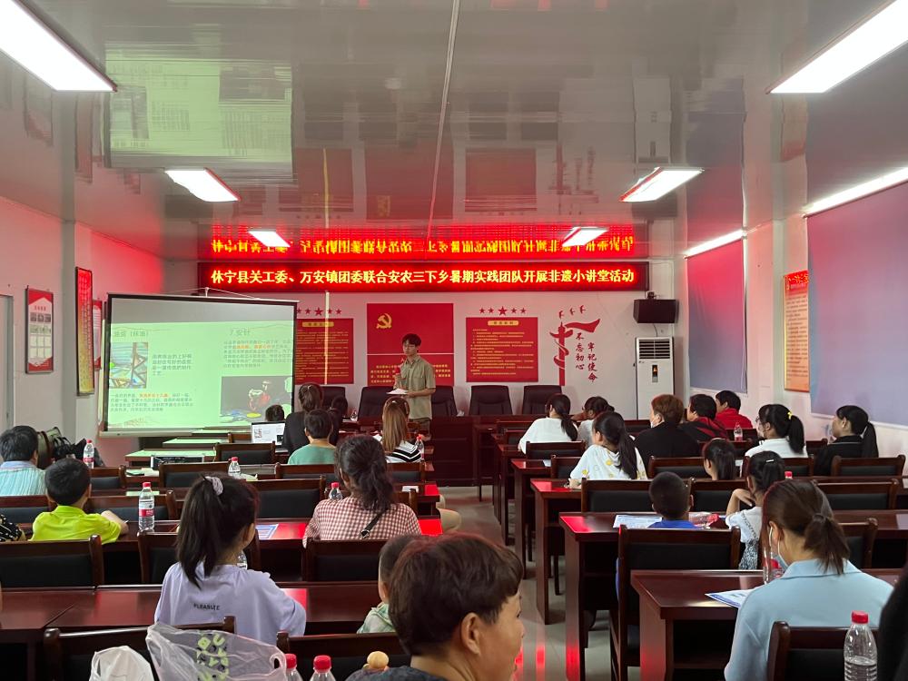 7月13日,安徽农业大学暑期三下乡社会实践活动的4名大一学生,与休宁县关工委、万安镇团委在该镇钟塘村新时代文明实践站联合开展“非遗小课堂”活动,向到场的40余名中小学生和家长潜移默化地讲述罗盘的起源、罗盘的作用、罗盘的制作和非物质文化遗产的发展和传承。活动中,安农大学生还手把手地教当地中小学生绘制罗盘图案。在场的学生一致认为,中国古代传统的罗盘制作技艺主要来自故乡万安,尤其万安吴鲁衡店制作的罗盘,曾获得1915年巴拿马万国博览会金奖而感到无比骄傲和自豪,纷纷表示要以“工匠精神”努力学好本领,长大后报效祖国。